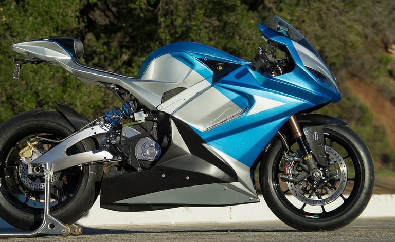 Você logo imagina em estafetas quando se trata de moto elétrica, esqueça isso. A Lightning LS-218 chegou em 2014 para desafiar os paradigmas de que motos elétricas não devem ter sentimentos melancólicos. A esportiva com design contemporâneo, tem um motor elétrico de 150 kW (200 cv) e uma única marcha, capaz de atingir 351 km/h.